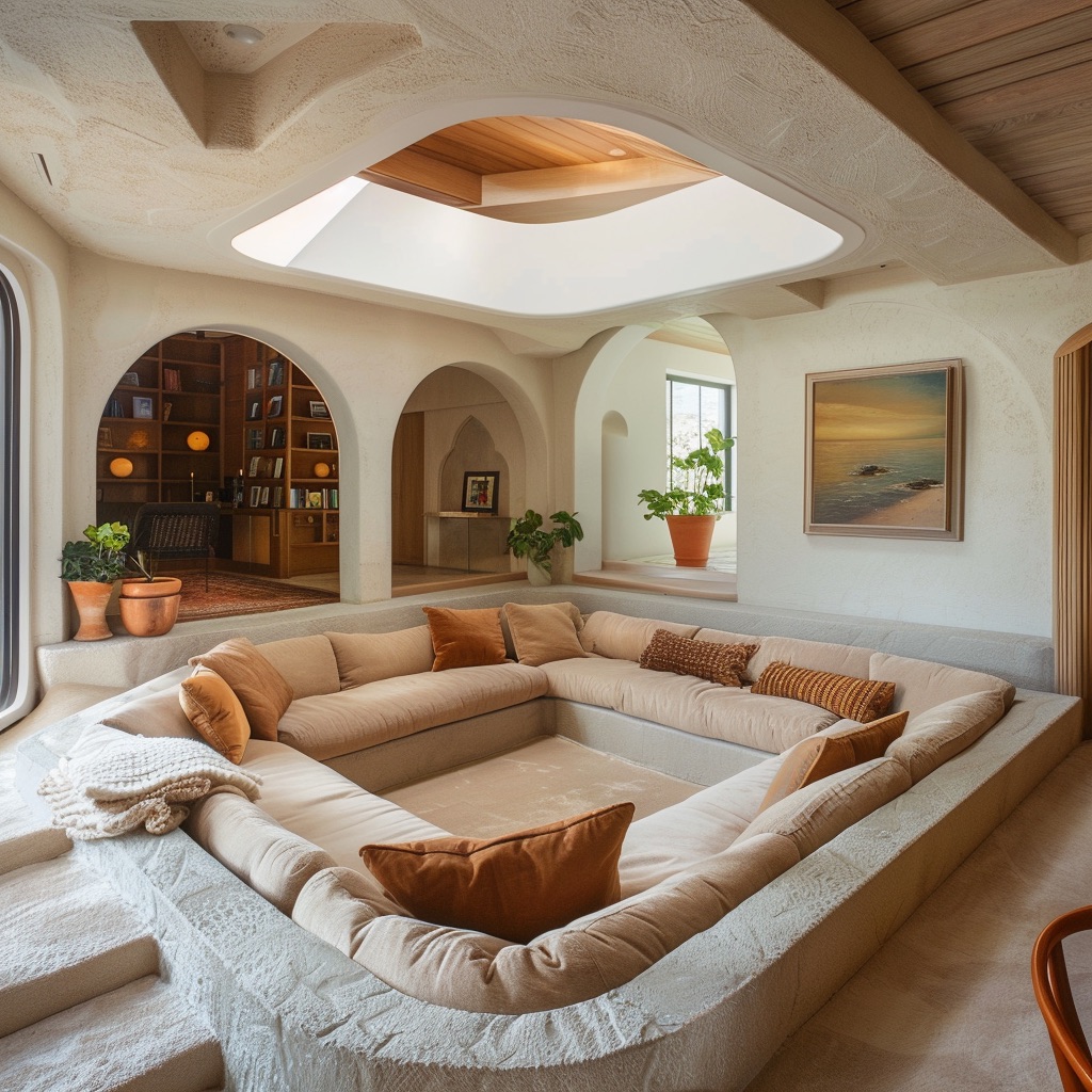Modern reinterpretations of the conversation pit often blend the vintage appeal with contemporary aesthetics. Architects and designers are innovating within this niche by integrating modern materials, versatile furniture arrangements, and state-of-the-art entertainment systems that enhance the user experience while maintaining the pit’s conversational nature. Whether it’s reviving the classic look with vibrant colours and shag carpets or opting for minimalist designs with sleek lines and neutral tones, the modern conversation pit is adaptable to various home styles and preferences.